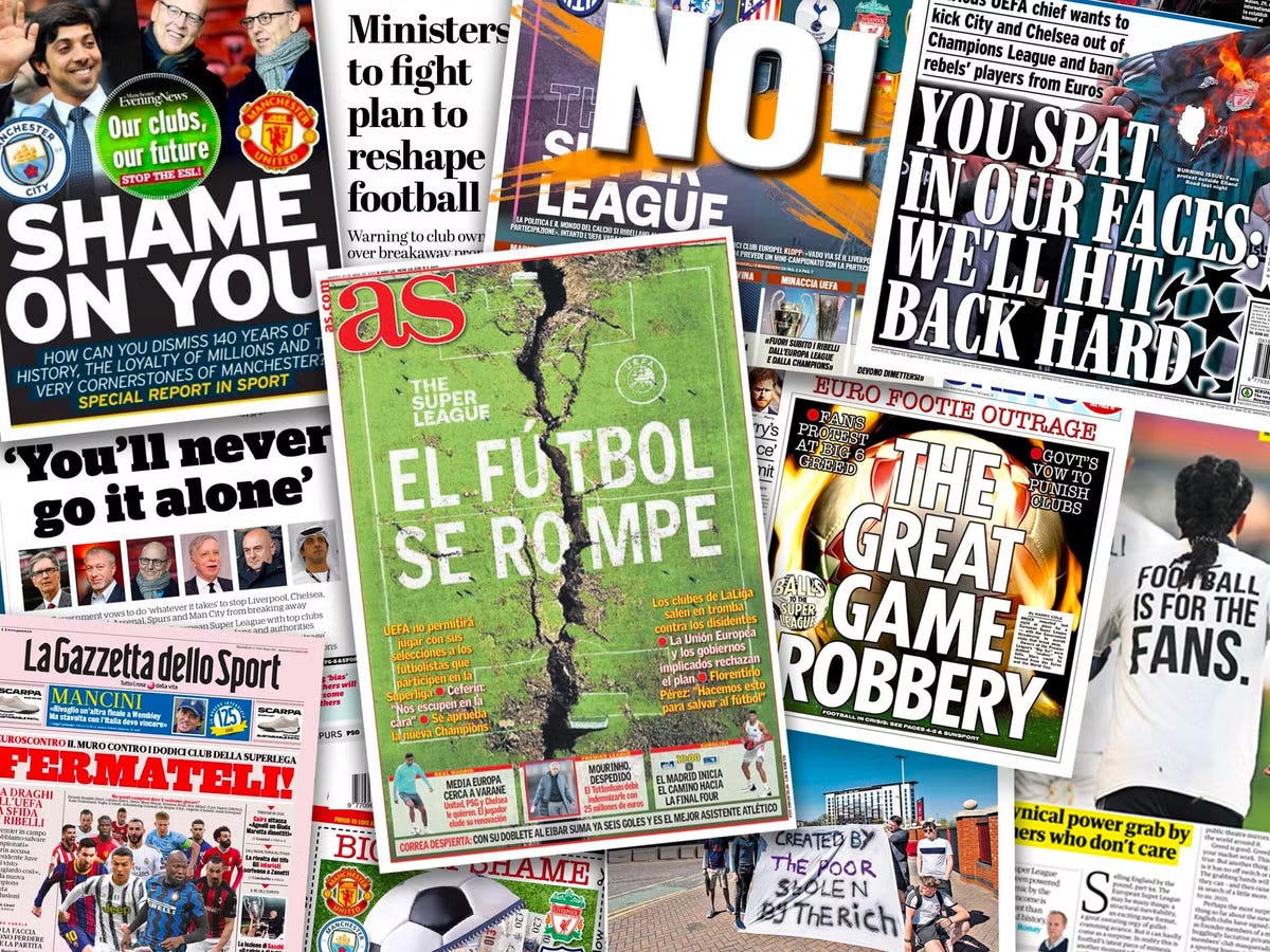 Alle kanten van het argument worden gepresenteerd: waarom is het idee van de Super League ontstaan, wat is de motivatie van de betrokken clubs, hoe zijn de strijdplannen gevormd en welke voor- en nadelen zijn er?